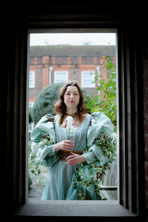 Costumes constructed from my own designs for a hypothetical performance of 'The Clockmaker's Daughter' by Webborn & Finn. The chosen designs were Constance's 'statue' costume and Will Riley's 'Finale' costume. The costumes were inspired by late Victorian fashion with some more fantastical elements to reflect the fairytale themes of the show.